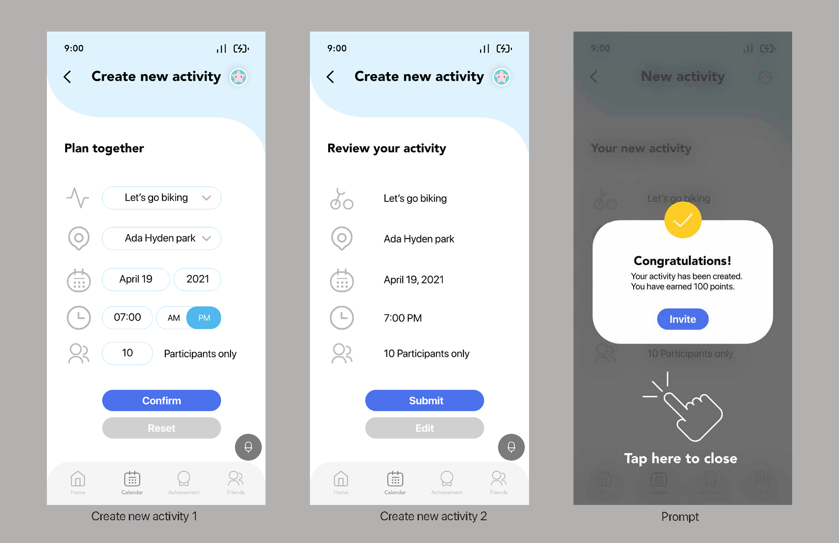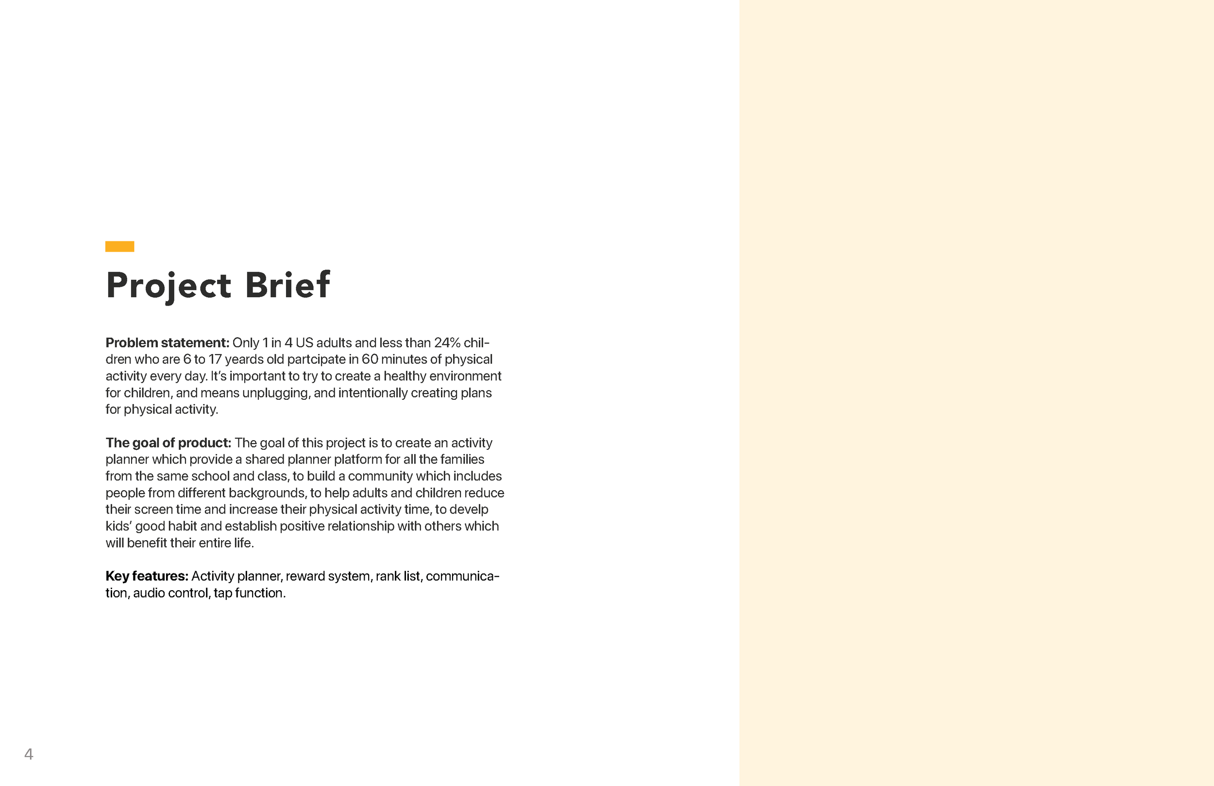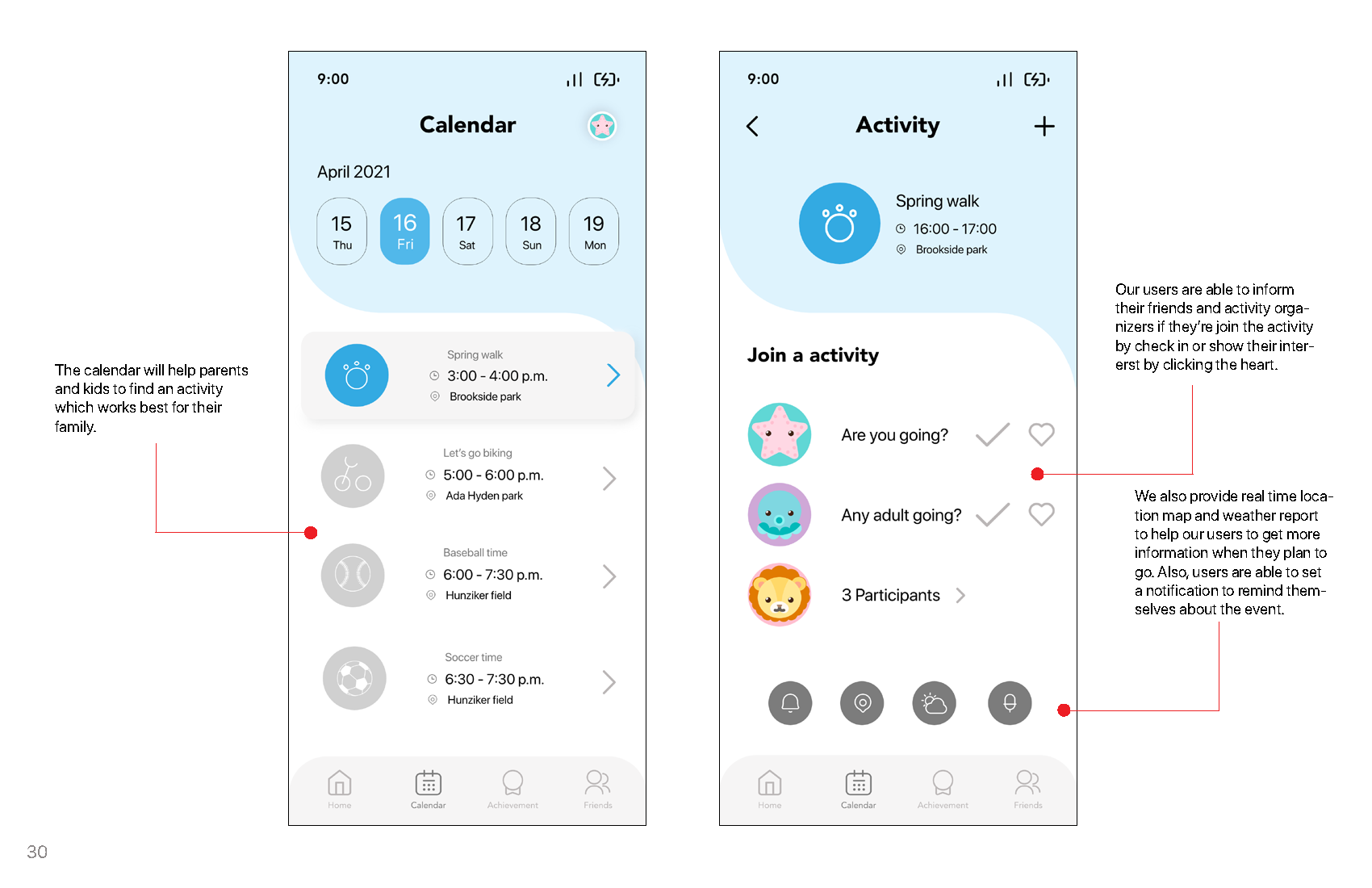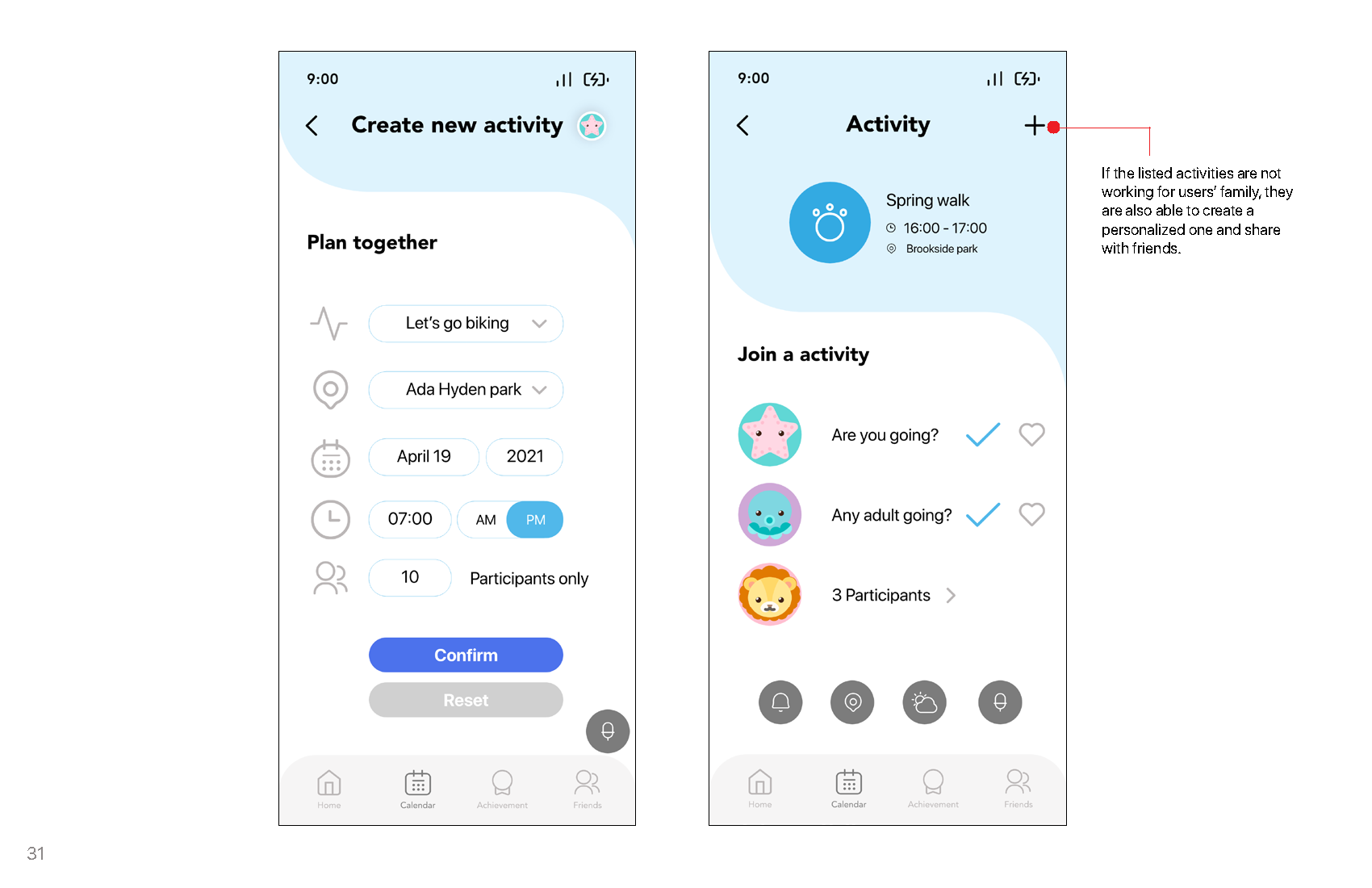 The goal of this project is to create an activity planner which provide a shared planner platform for all the families from the same school and class, to build a community which includes people from different backgrounds, to help adults and children reduce their screen time and increase their physical activity time, to develop kids’ good habit and establish positive relationship with others which will benefit their entire life.